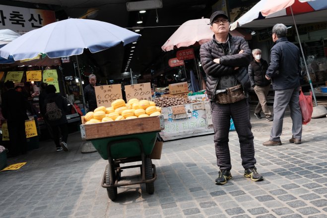 Man with melons, Daejeon, South Korea A man with Korean melons for sale at Jungang Market in Daejeon, South Korea. Like Loading... Related