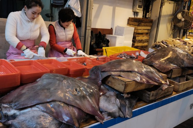Two ladies slicing fish, Gwangju, South Korea Two ladies slicing fish at Yangdong Market in Gwangju, South Korea. Like Loading... Related