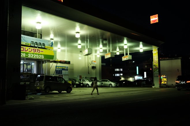 Gas station, Hirosaki, Japan A woman walking by a gas station in Hirosaki, Japan. Like Loading... Related