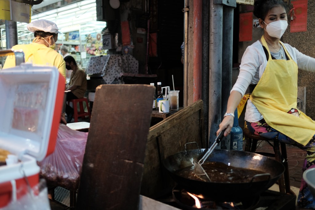 Woman in yellow apron, Bangkok, Thailand A woman cooking at the Yaowarat Night Market in Bangkok, Thailand. Like Loading... Related