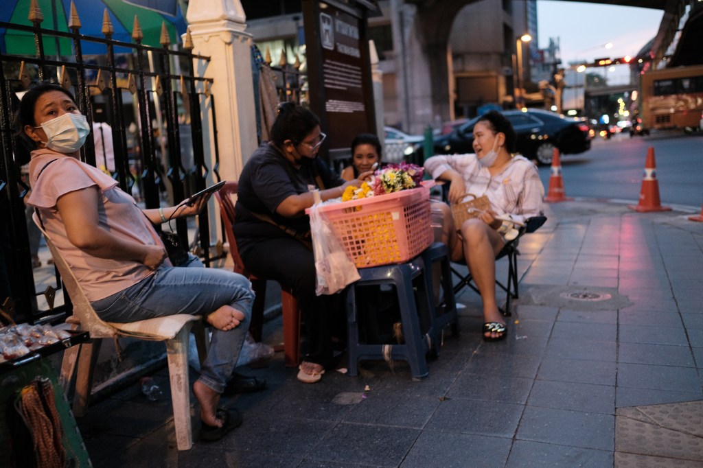 Ladies selling flower garlands, Bangkok, Thailand Ladies selling flower garlands outside Erawan Shrine in Bangkok, Thailand. Like Loading... Related