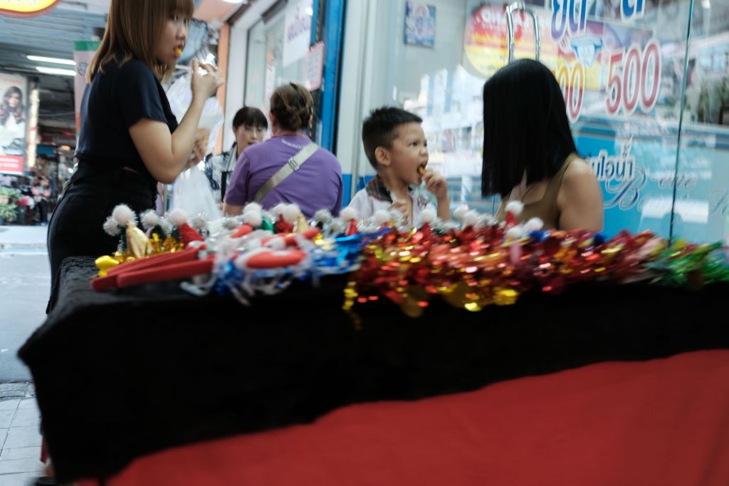 A boy eating in Bangkok, Thailand.