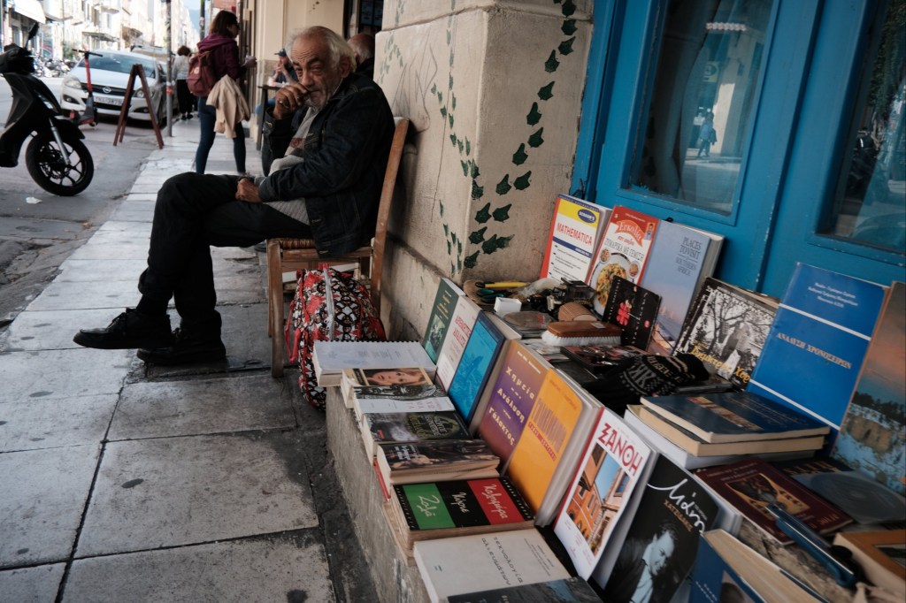 A bookseller in Athens, Greece.