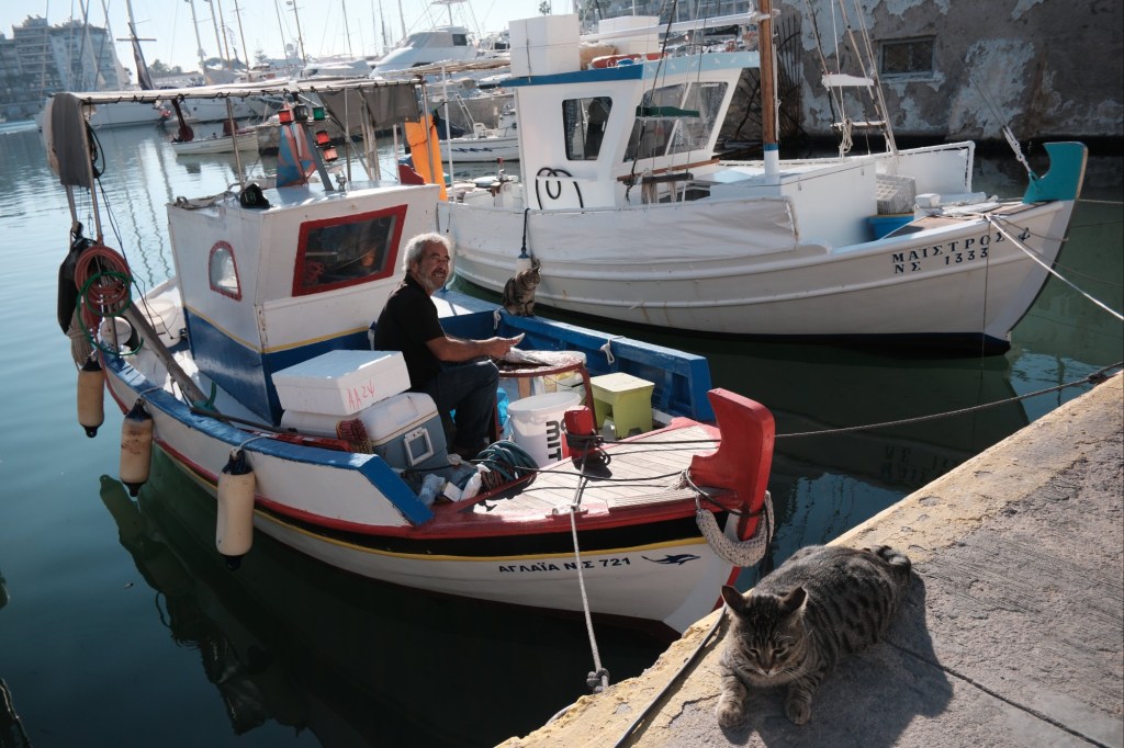 Fisherman cleaning fish, Piraeus, Greece A fisherman cleans fish aboard his boat in Zea Marina in Piraeus, Greece. Like Loading... Related
