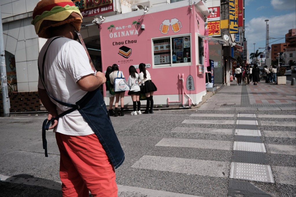 Hamburger head, Okinawa, Japan A guy promoting a hamburger restaurant in Naha, Okinawa, Japan. Like Loading... Related