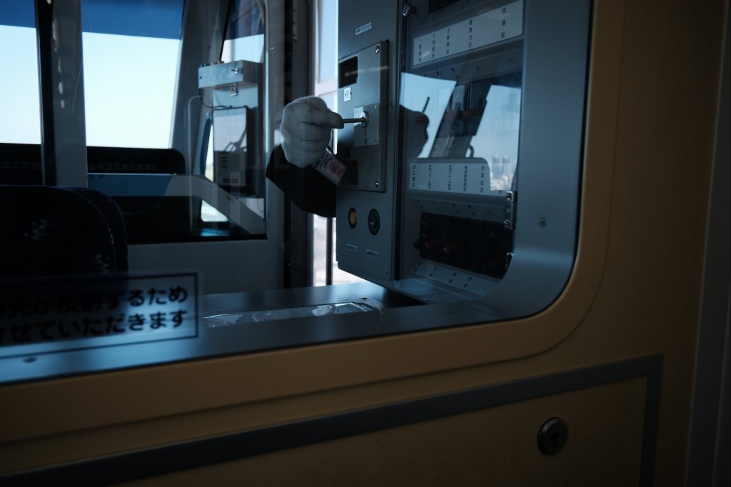 Hand turning key, Okinawa, Japan A driver operates the doors on a monorail in Naha, Okinawa, Japan. Like Loading... Related
