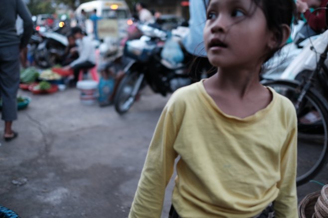 Girl in yellow shirt, Battambang, Cambodia A girl in a yellow shirt at the market in Battambang, Cambodia.