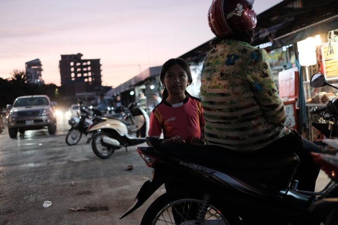 Girl waiting on her motorbike, Battambang, Cambodia A girl waiting on her motorbike at the market in Battambang, Cambodia.