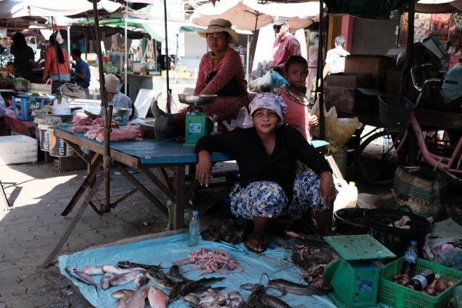 Women waiting for customers at the market in Kampong Chhnang, Cambodia.