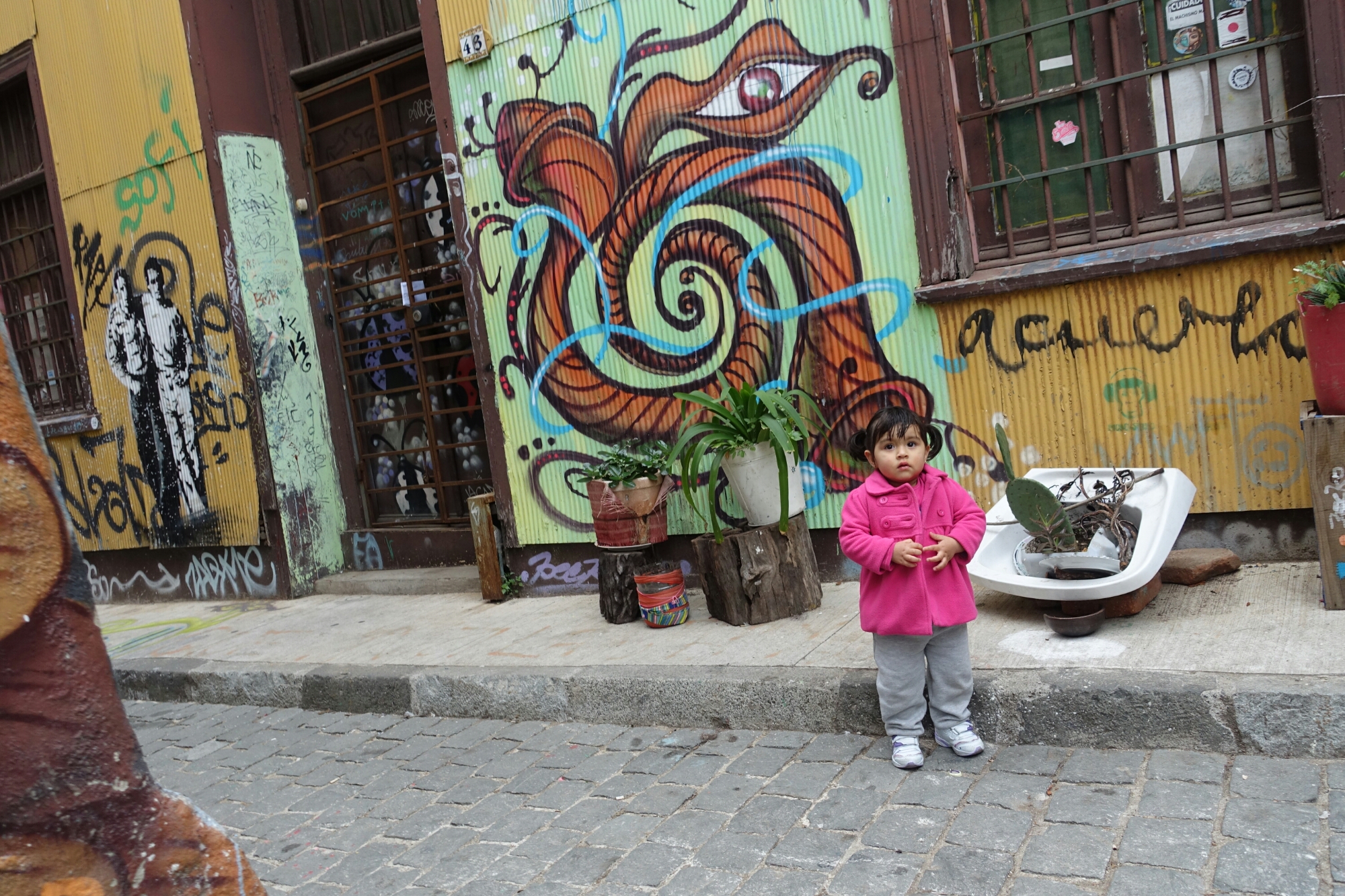 Little girl in pink, Valparaíso, Chile A little girl playing in an alleyway of Cerro Concepción pauses briefly as I walk by, in Valparaíso, Chile.