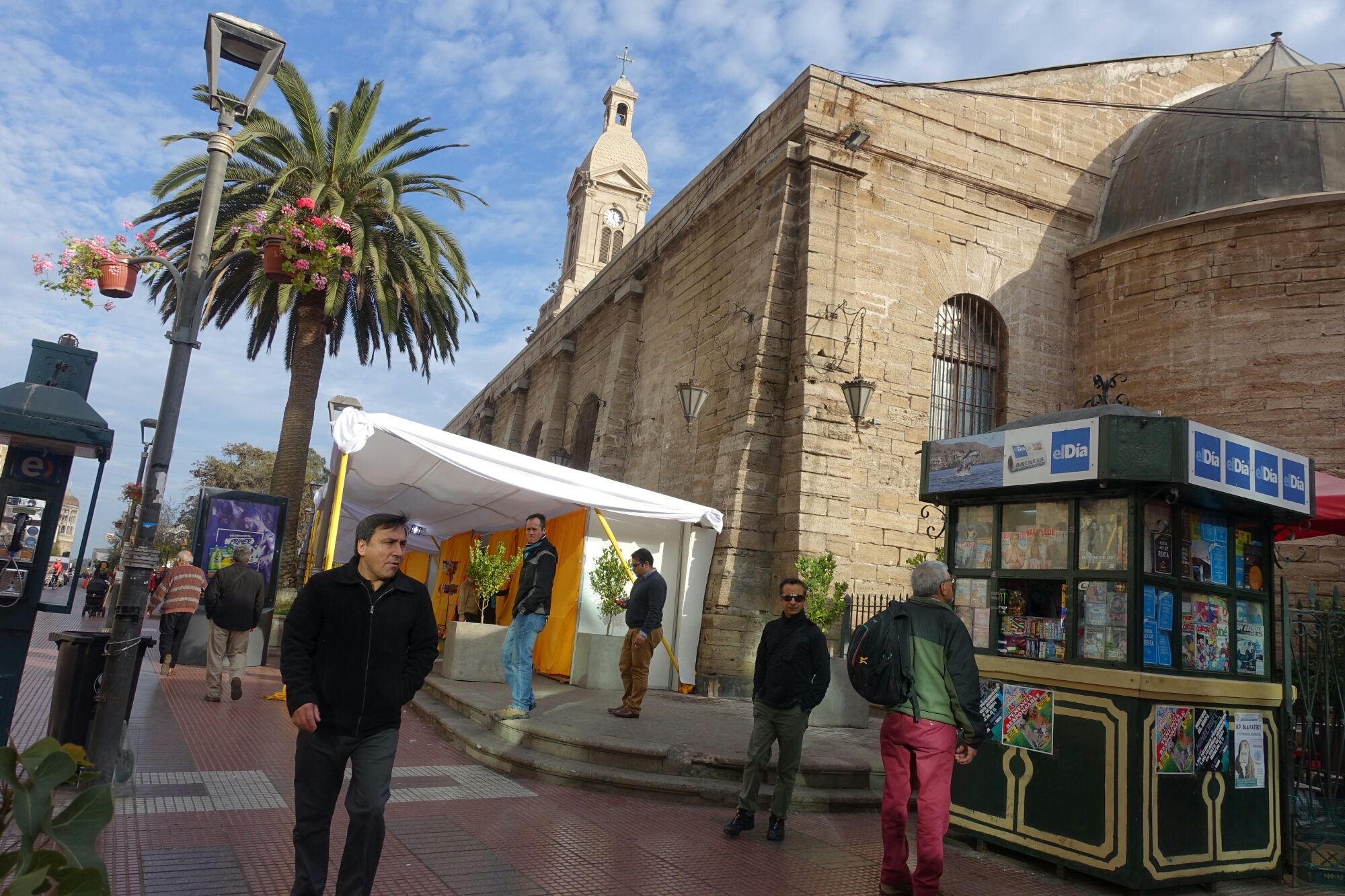 Iglesia Catedral, La Serena, Chile The streets stir with early morning activity near Iglesia Catedral in La Serena, Chile.