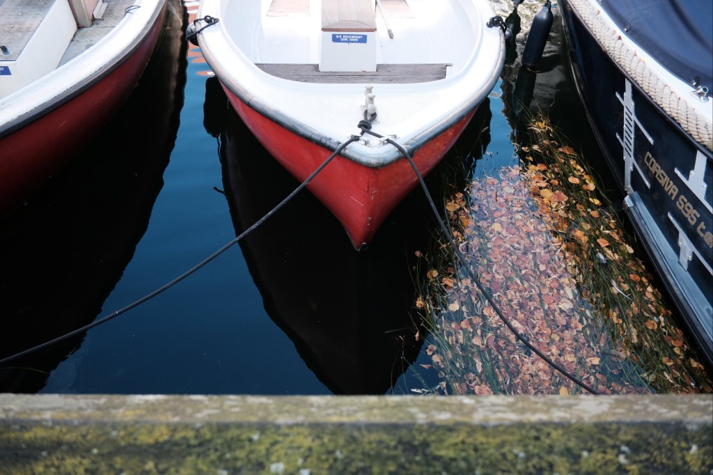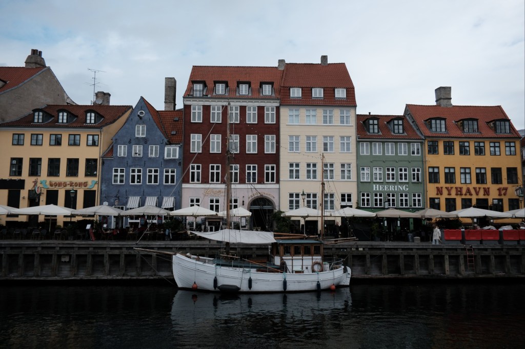 A white boat in Nyhavn, Copenhagen, Denmark.