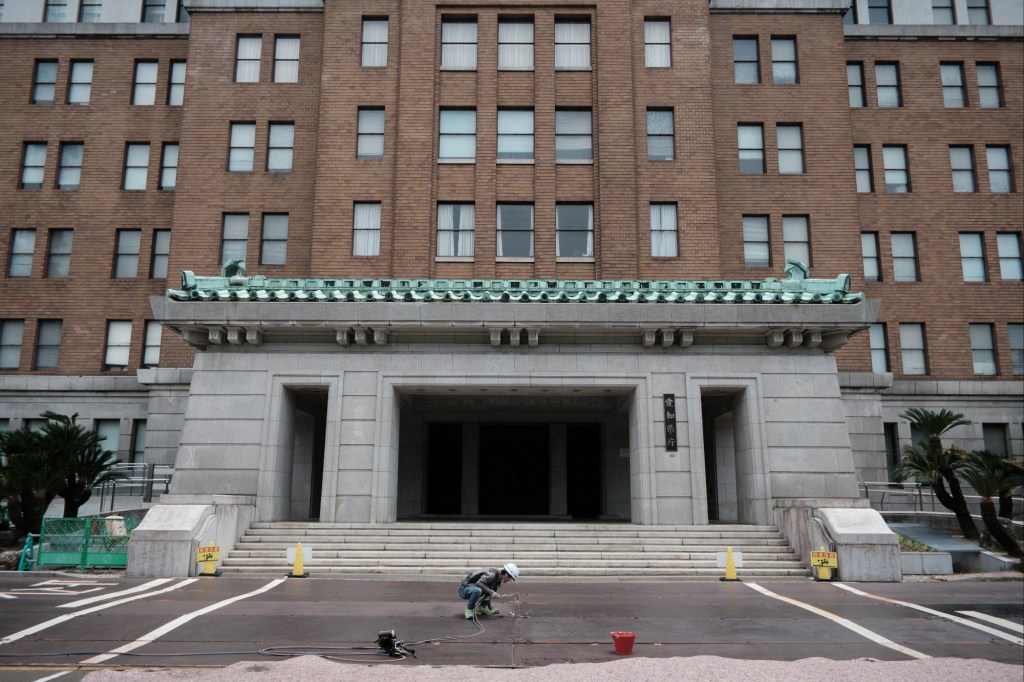 A welder working at the Aichi Prefectural Government Building in Nagoya, Japan.