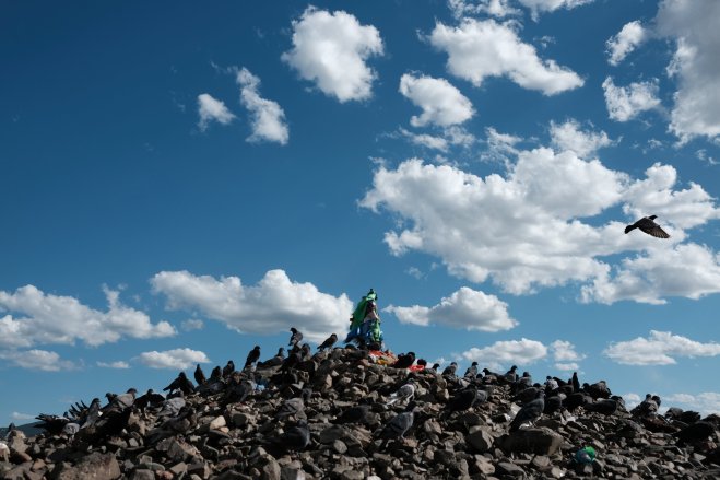Pigeons and Tasgany Ovoo, Ulaanbaatar, Mongolia