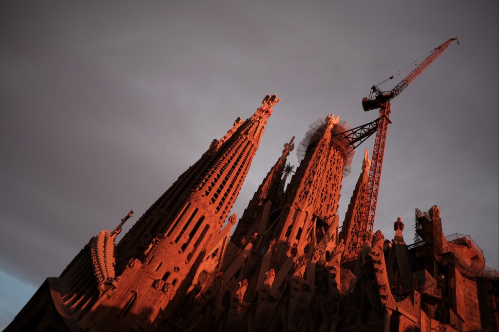 Basílica de la Sagrada Família at sunrise in Barcelona, Spain.