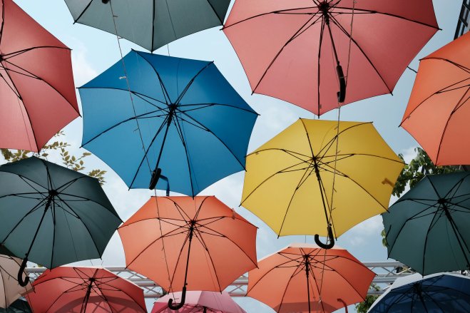 Umbrellas, Taichung, Taiwan Umbrellas cover a walkway at the Cultural and Creative Industries Park in Taichung, Taiwan.