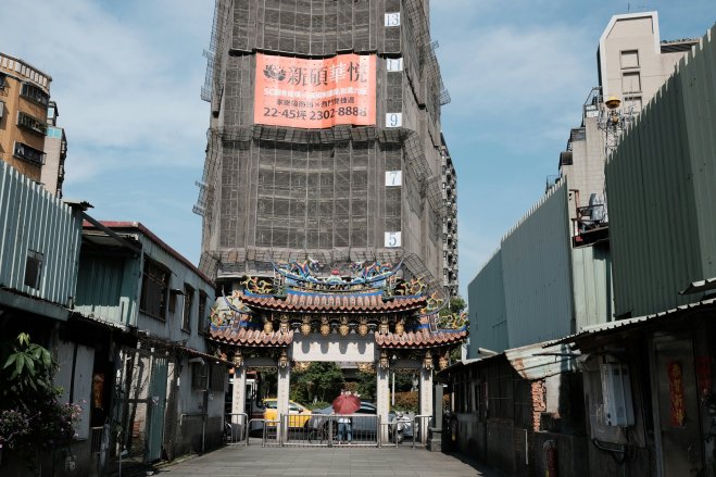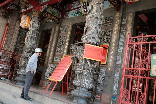Qingshui temple gate, Taipei, Taiwan Looking out towards the temple gate from Qingshui Temple in Taipei, Taiwan.