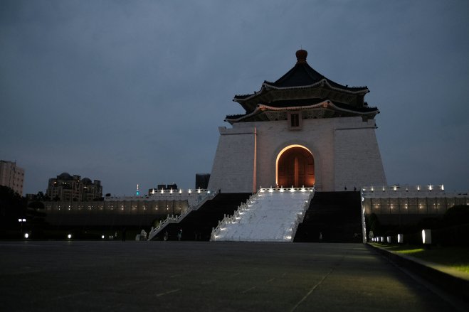 Chiang Kai-shek Memorial Hall, Taipei, Taiwan As night falls, the daytime crowds disappear from Chiang Kai-shek Memorial Hall in Taipei, Taiwan.