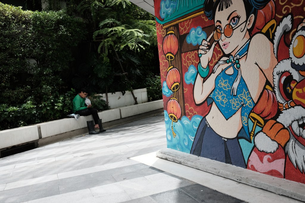 White walkway, Chiang Rai, Thailand I pause briefly on the walkway at Wat Rong Khun, or more famously known as the White Temple, in Chiang Rai, Thailand.