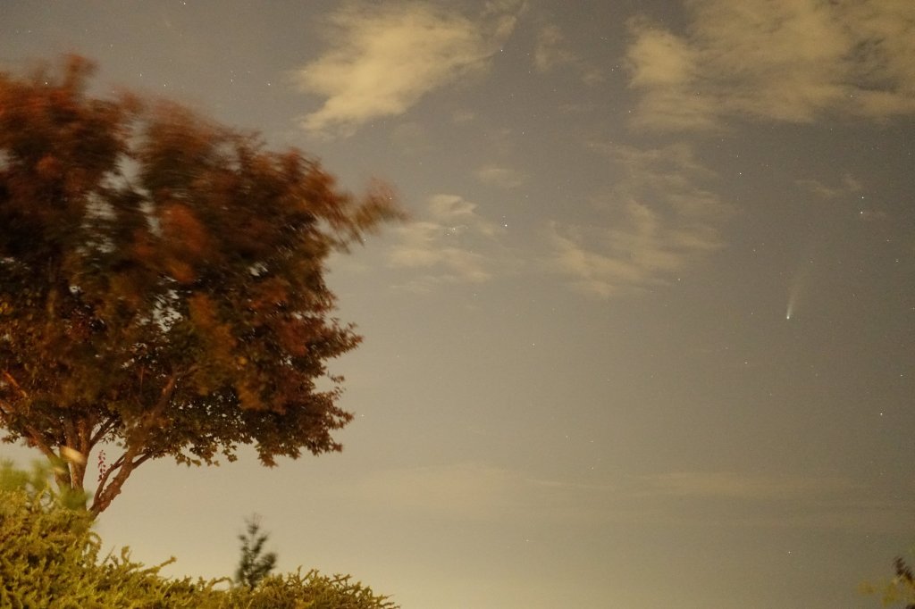 Comet NEOWISE and treetops in El Dorado Hills, USA.