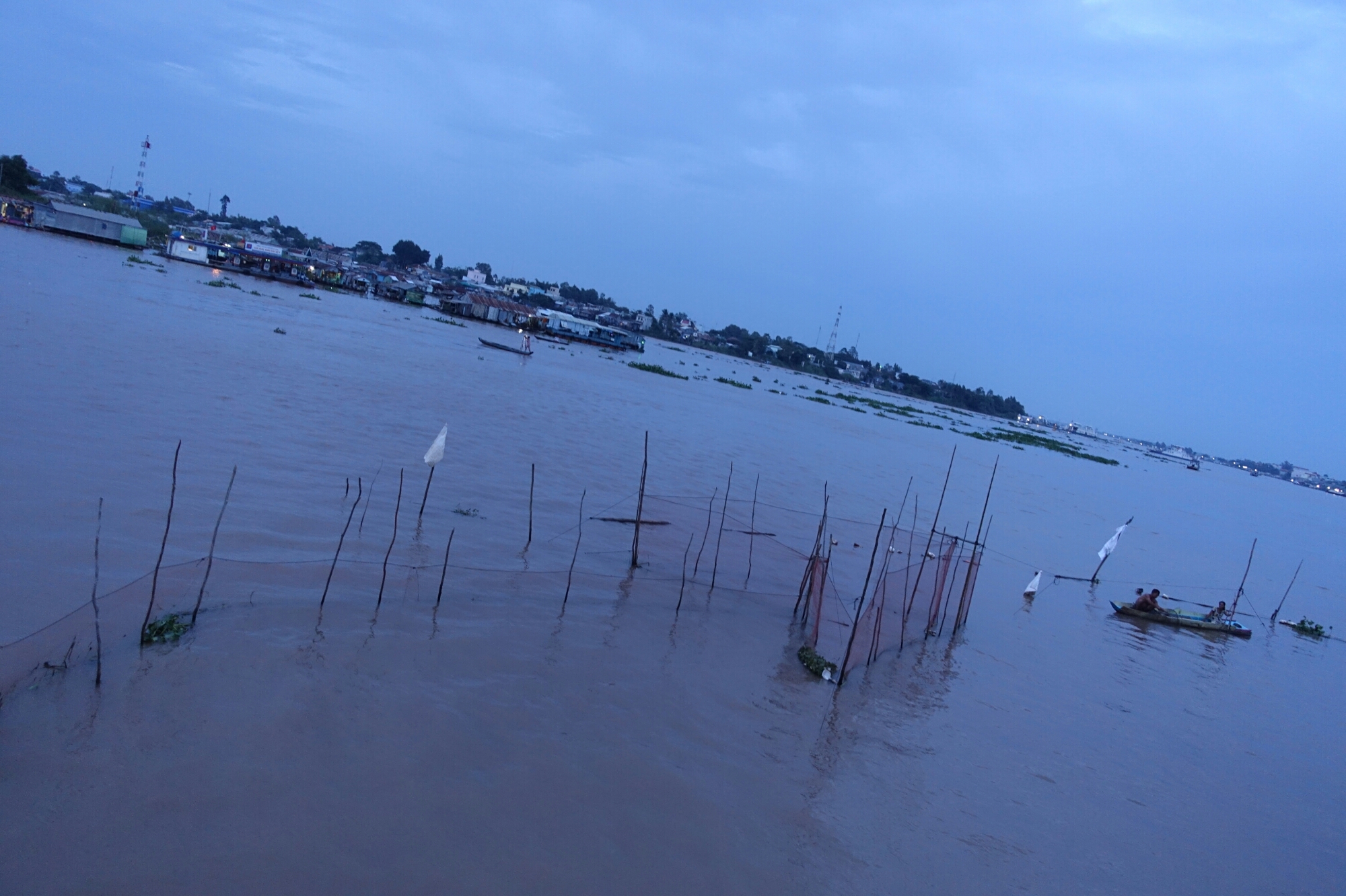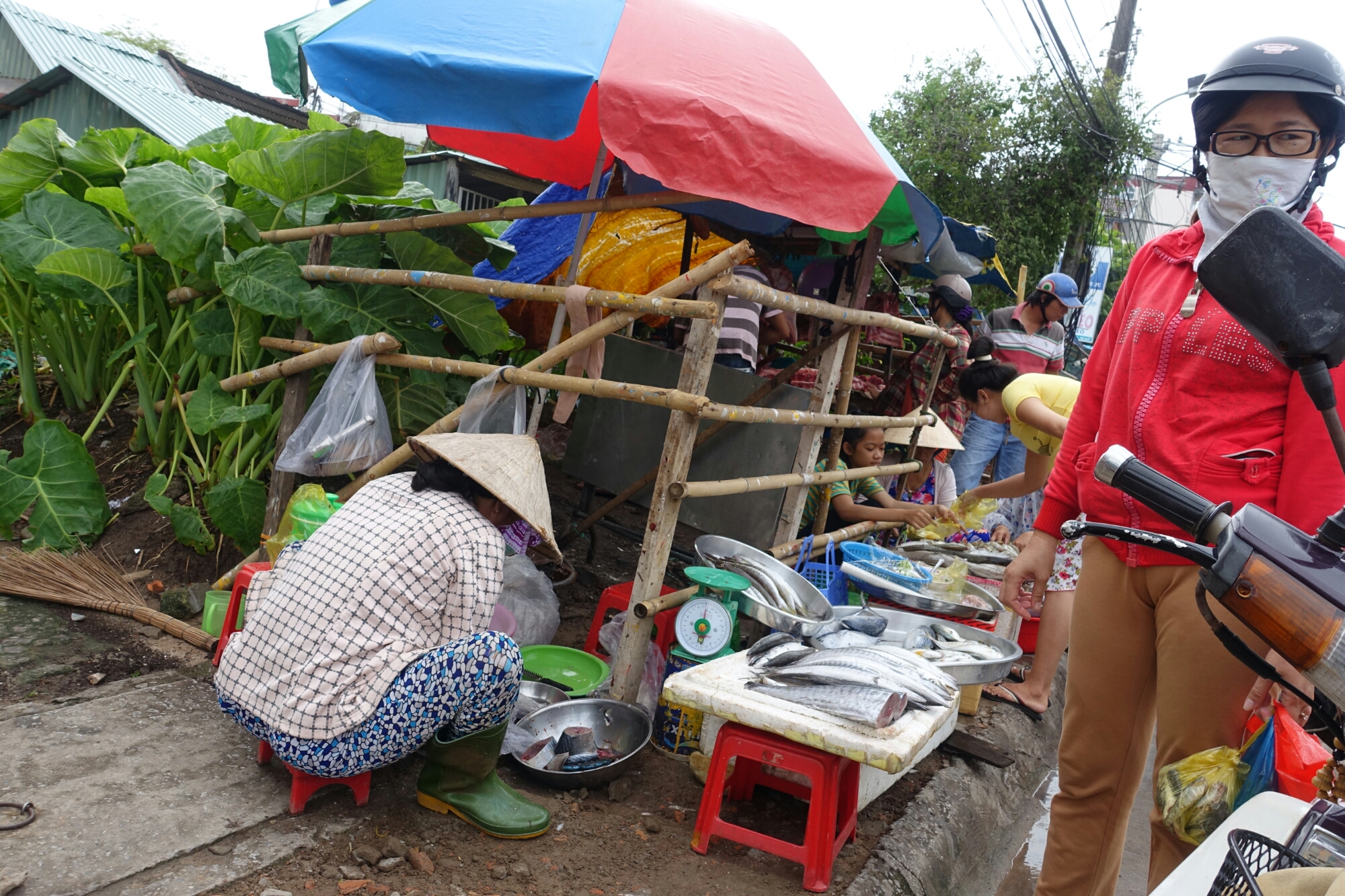 With tarps strung out overhead to keep out the rain, and narrow aisles congested with carts and motorbikes, the market in Chau Doc, Vietnam, is a little claustrophobic.