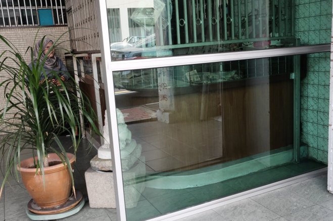 Lady behind plant, Alor Setar, Malaysia A lady peeks out from behind a plant in Alor Setar, Malaysia.