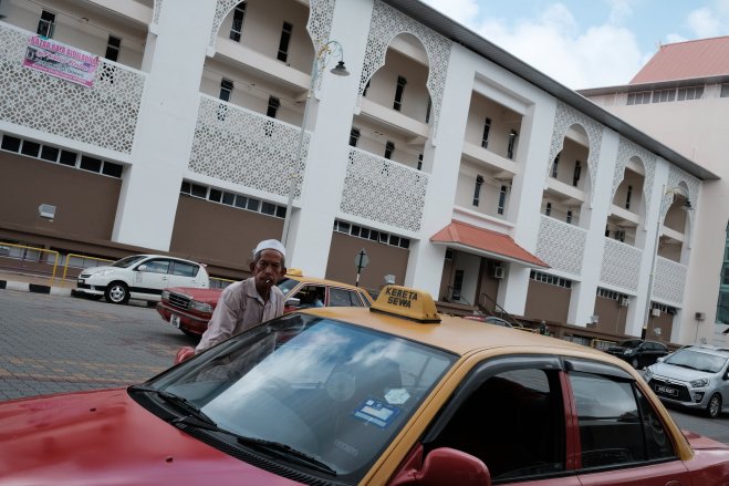 Taxi driver and his cab, Alor Setar, Malaysia A taxi driver getting into his cab in Alor Setar, Malaysia.