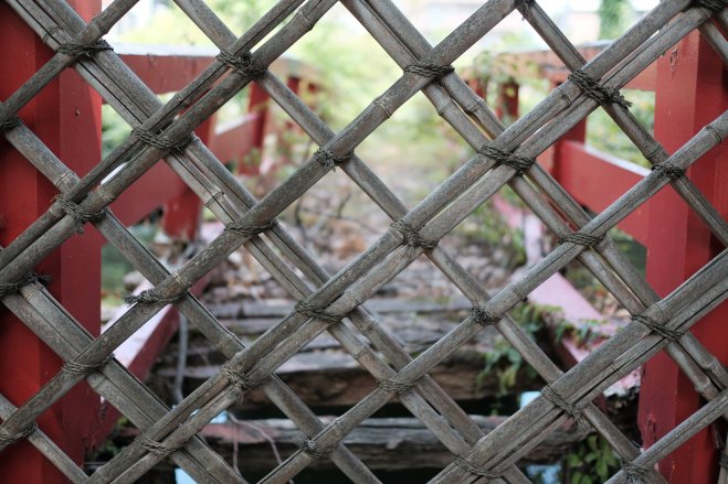 Woman walking across bridge, Aomori, Japan A woman walking across a pedestrian bridge in Aomori, Japan.