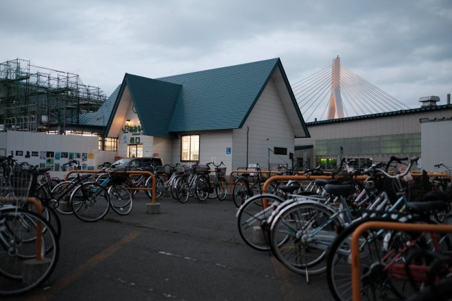 Man pushing cart with empty bottles, Aomori, Japan A man pushing a cart with empty bottles in Aomori, Japan.