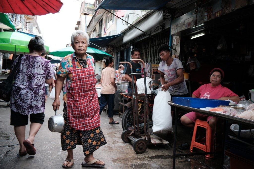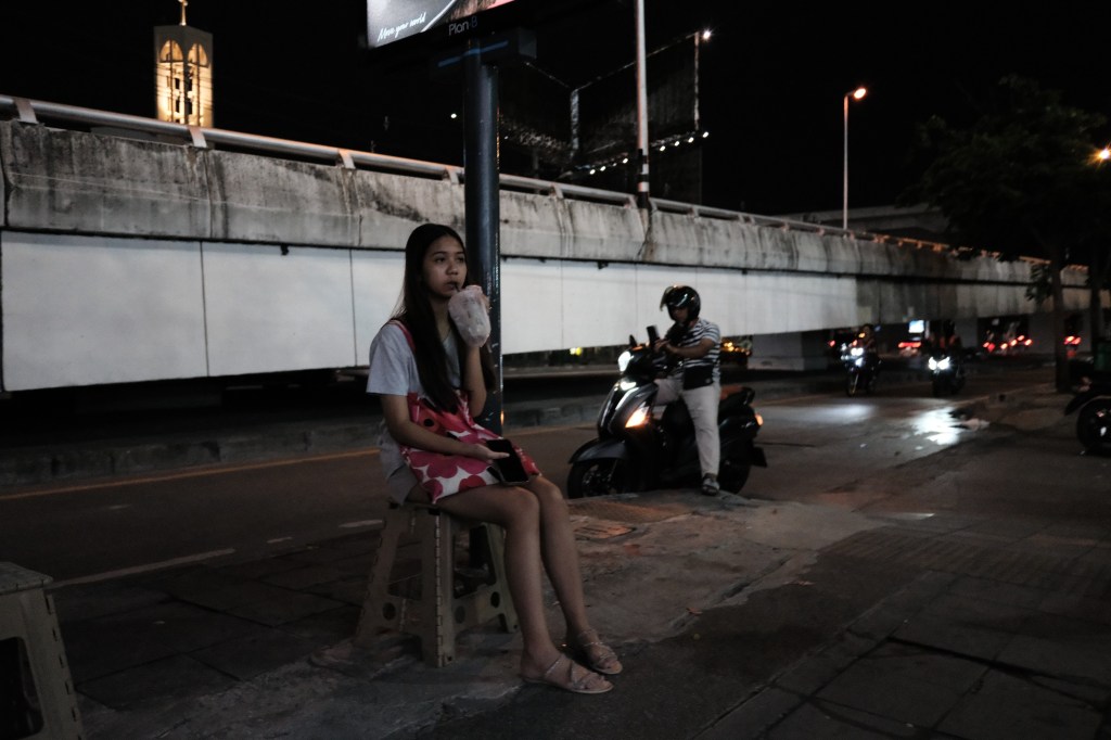 A street kitchen worker takes a break in Bangkok, Thailand.