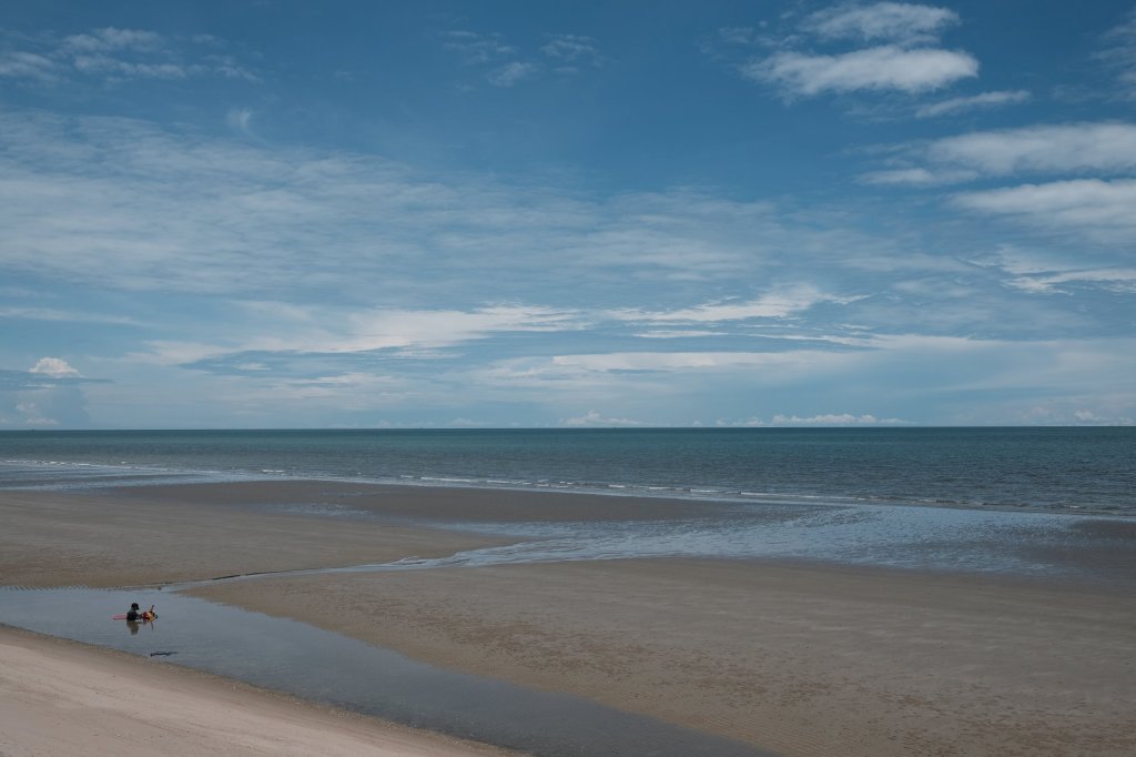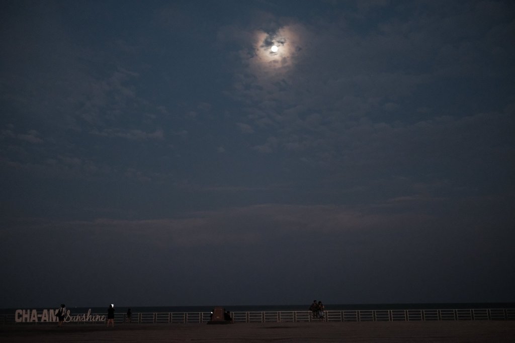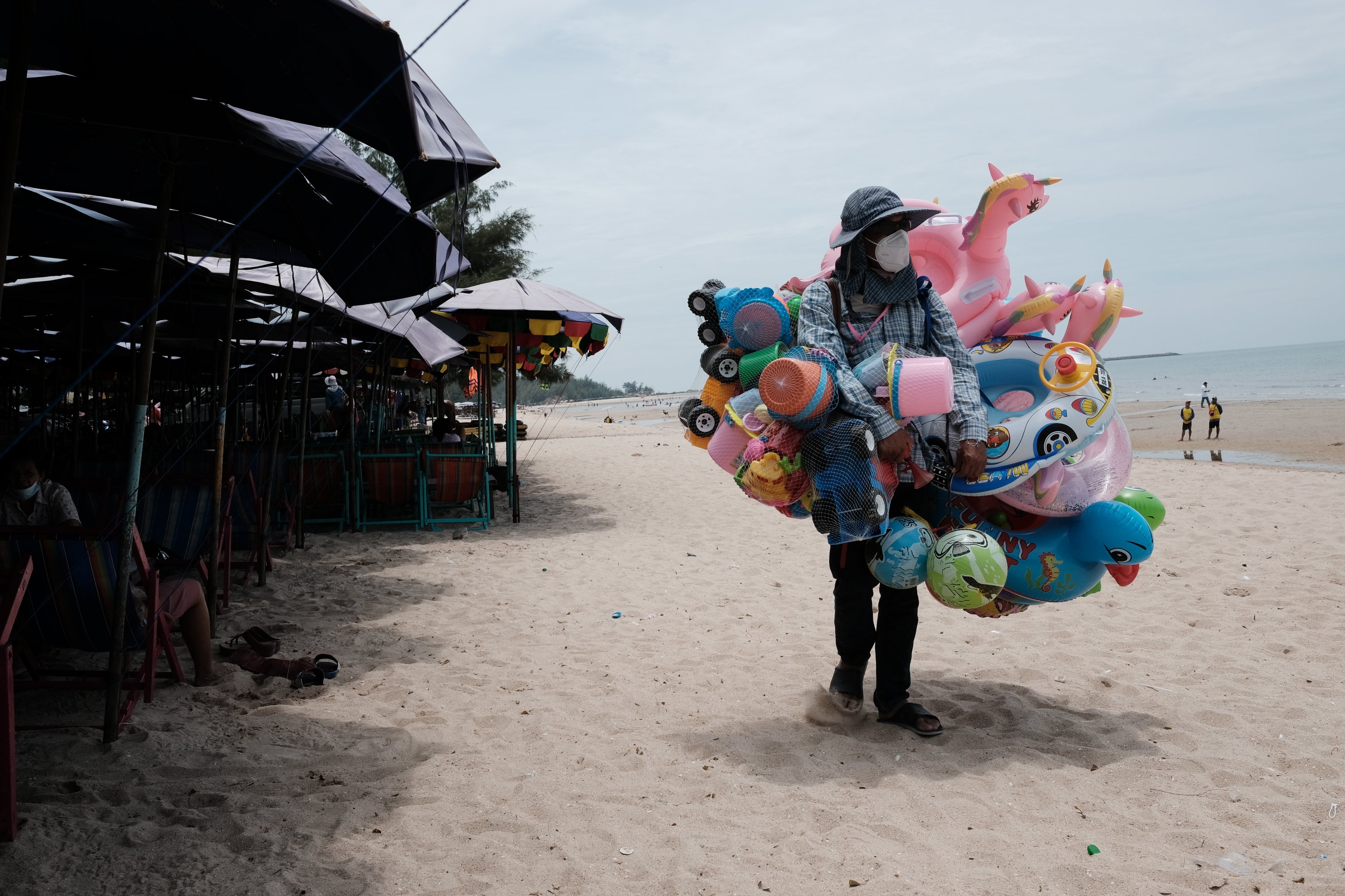 A guy walking on top of a mound along the Manila Baywalk in Manila, Philippines.