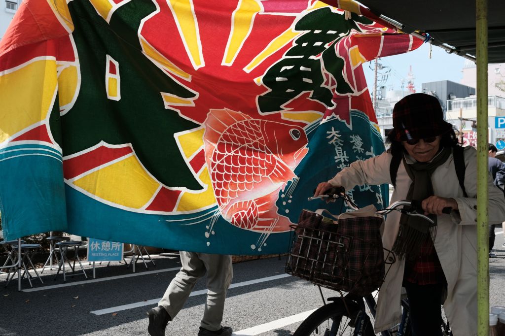 A woman with her bicycle at the Sunday Market in Kōchi, Japan.