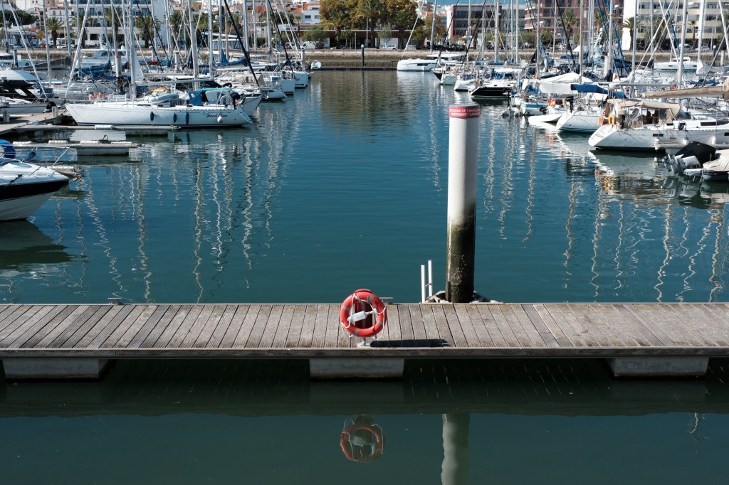 A flotation ring on a pier at the marina in Lagos, Portugal.