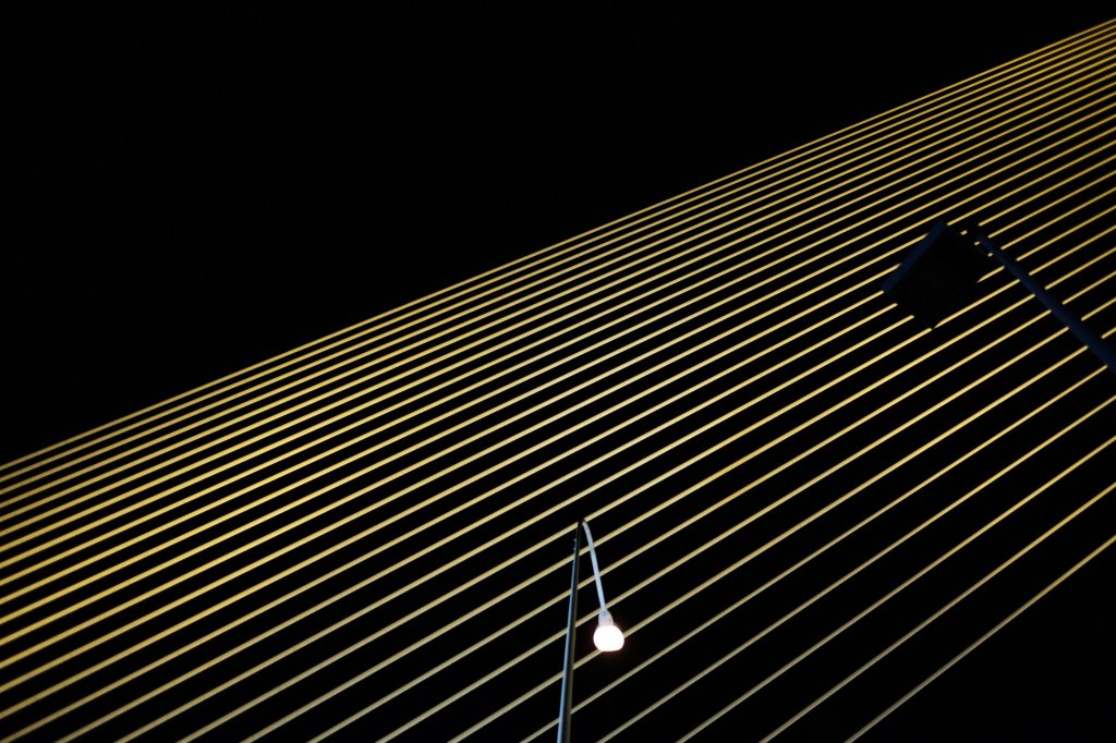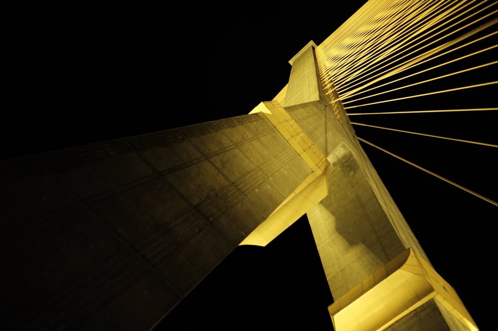 Two streetlights on the Rama VIII Bridge in Bangkok, Thailand.
