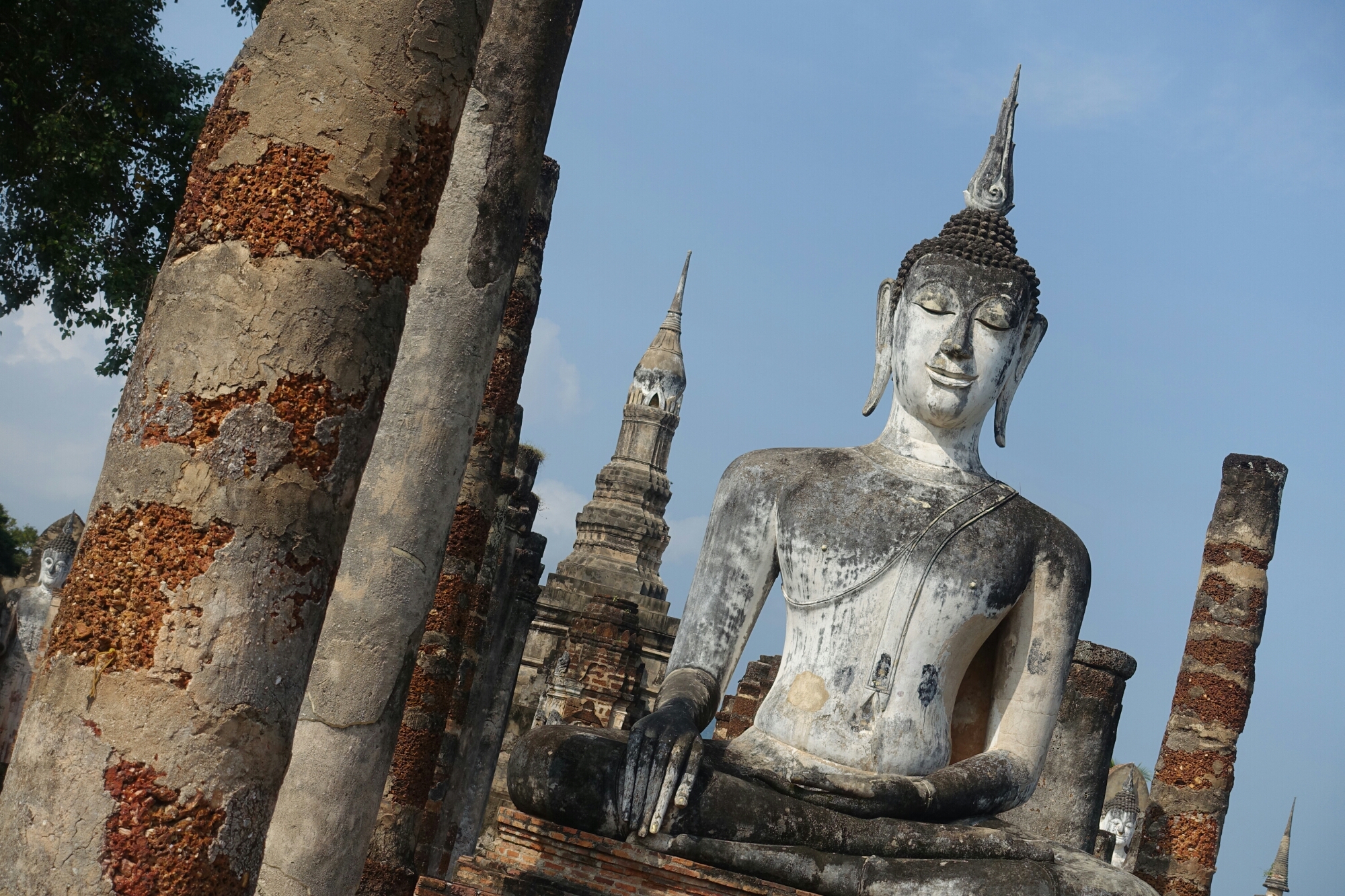 Enlightened Buddha, Sukhothai, Thailand Upon entering the vast complex of Wat Mahathat, this was one of many statues of an enlightened Buddha in Sukhothai, Thailand.