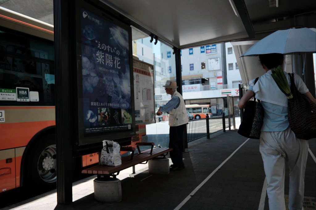 A man checks the schedule at a bus stop in Fujisawa, Japan.