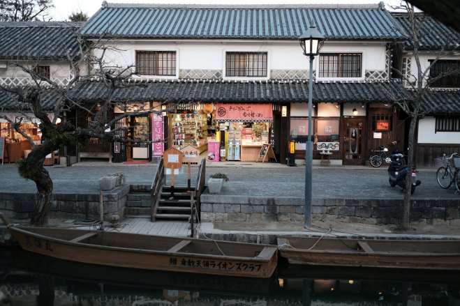 A storefront along the canal in the Bikan district of Kurashiki, Japan.
