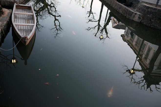 Canal boat and carp, Kurashiki, Japan