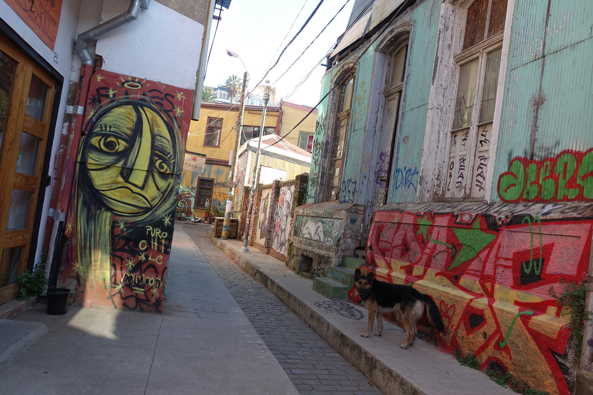 Stray dog, Valparaíso, Chile One of the many dogs that roam the alleys accompanies me for a short while as I explore Cerro Concepción in Valparaíso, Chile.