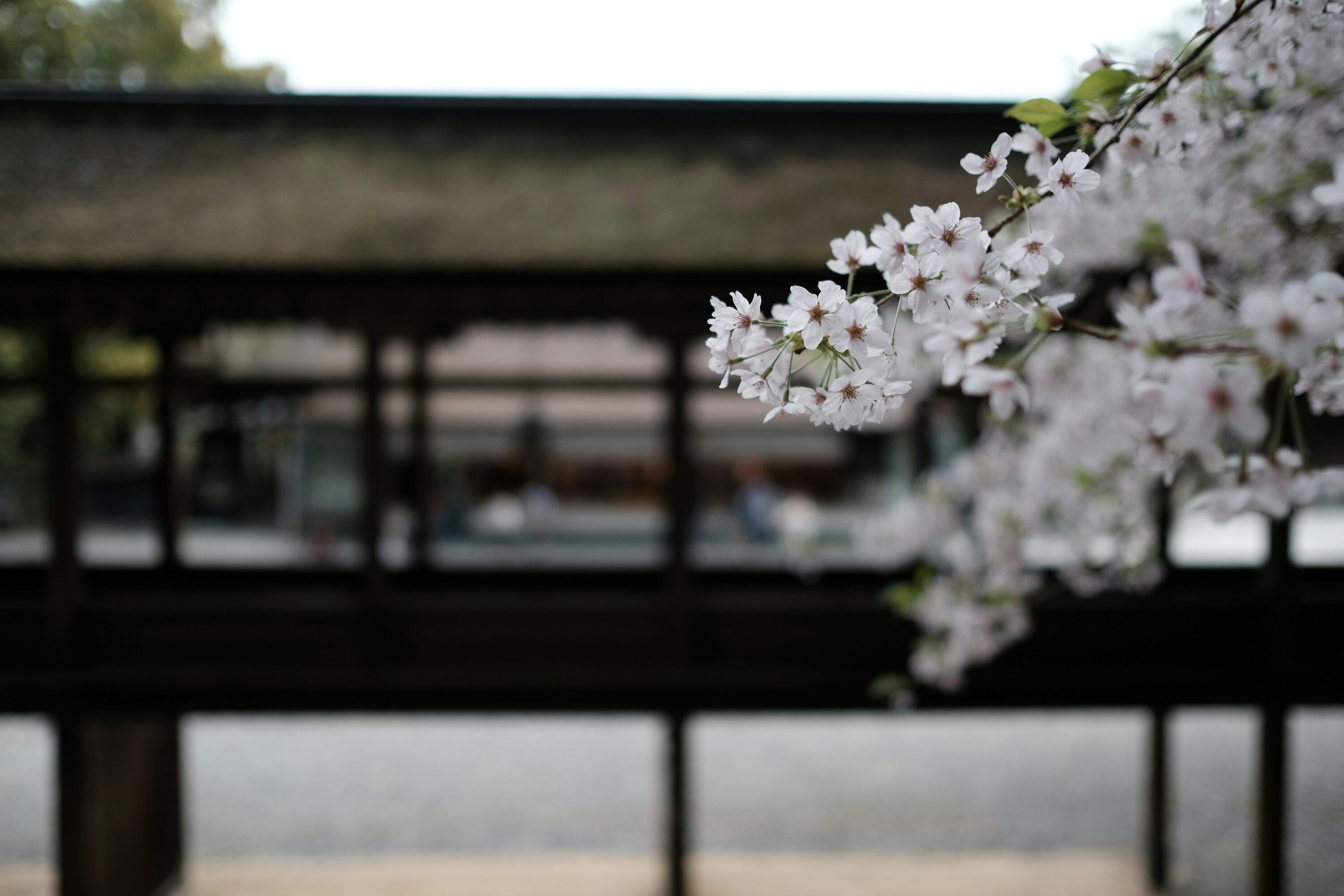Cherry blossom at Kotohira-gū, Kotohira, Japan Cherry blossoms in bloom behind the shrine building at Kotohira-gū, in Kotohira, Japan.