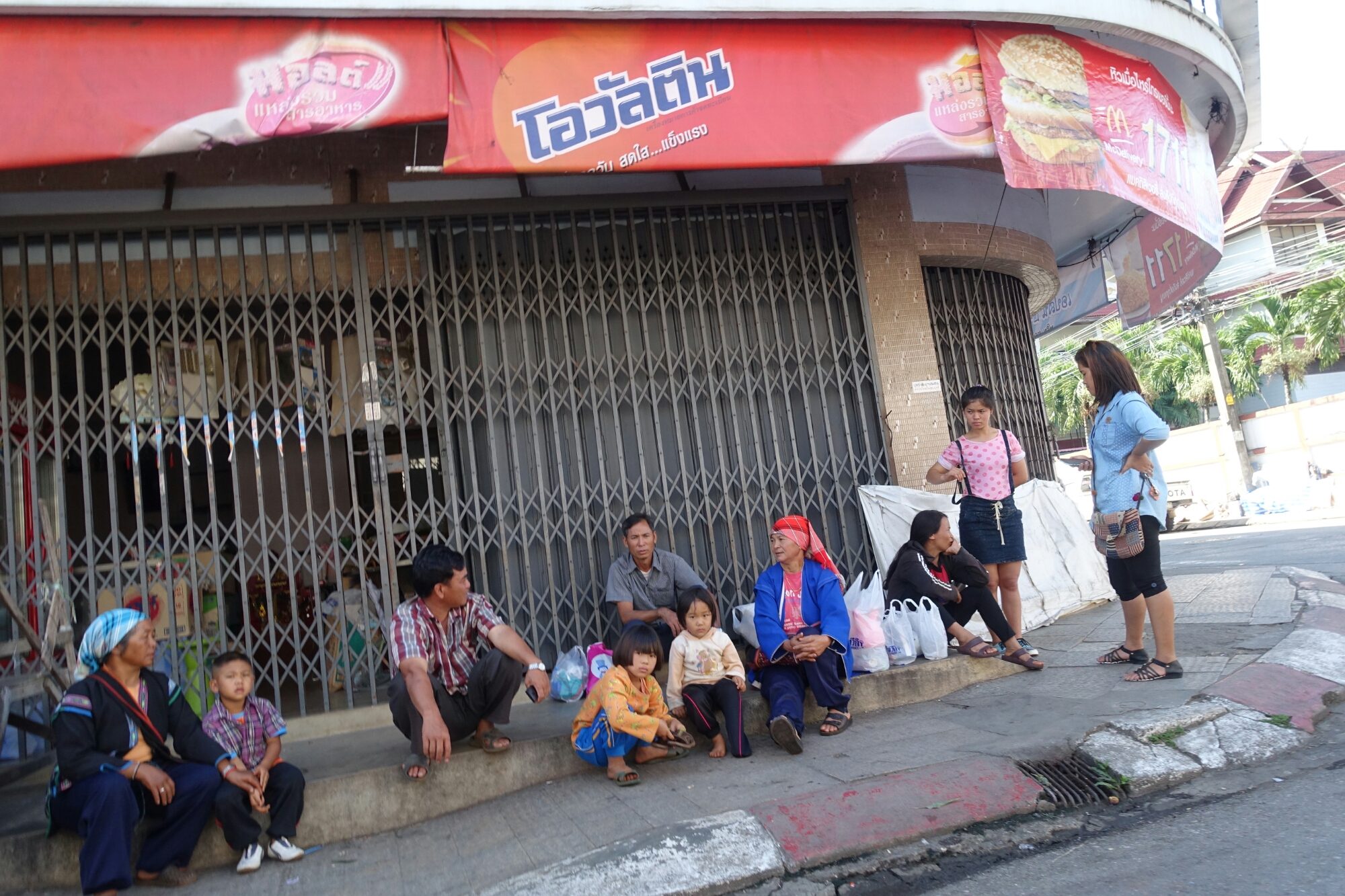 Waiting at the corner, Chiang Rai, Thailand These folks appear to be waiting for a ride on a street corner in Chiang Rai, Thailand.