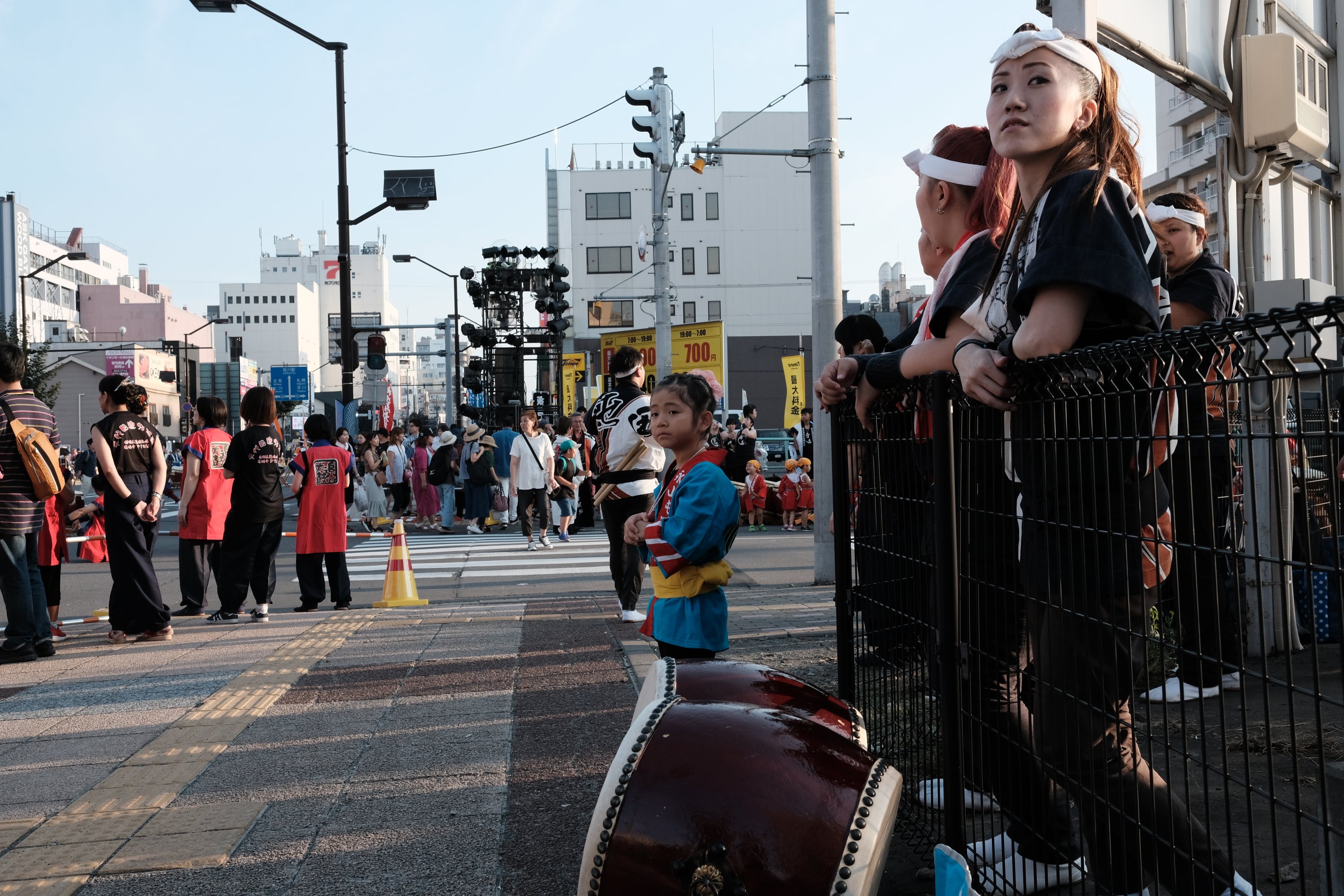 Taiko drummers waiting, Asahikawa, Japan Taiko drummers waiting for their turn to perform at the Sanroku Festival in Asahikawa, Japan.