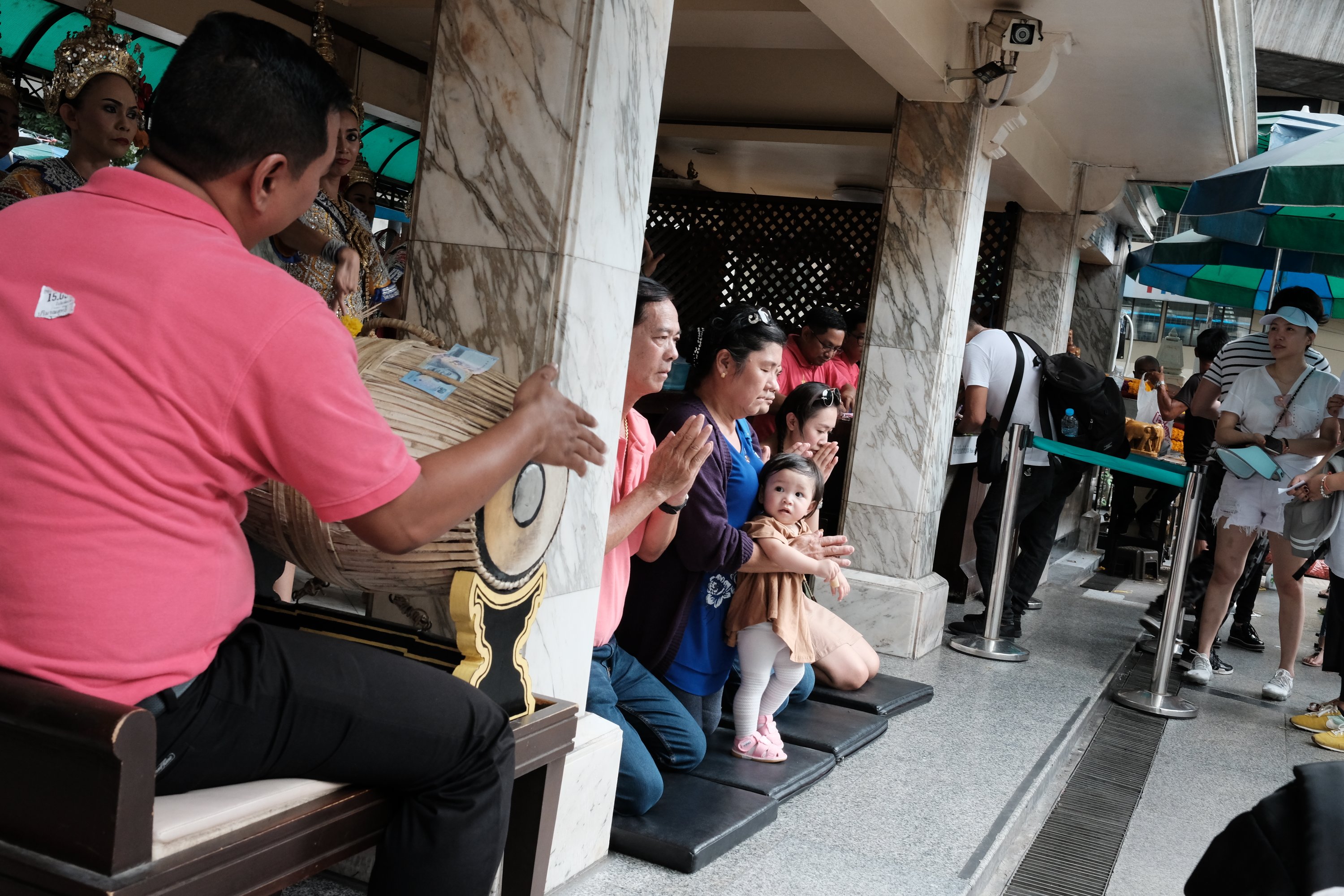 Family at the Erawan Shrine, Bangkok, Thailand A family paying their respects at the Erawan Shrine in Bangkok, Thailand.