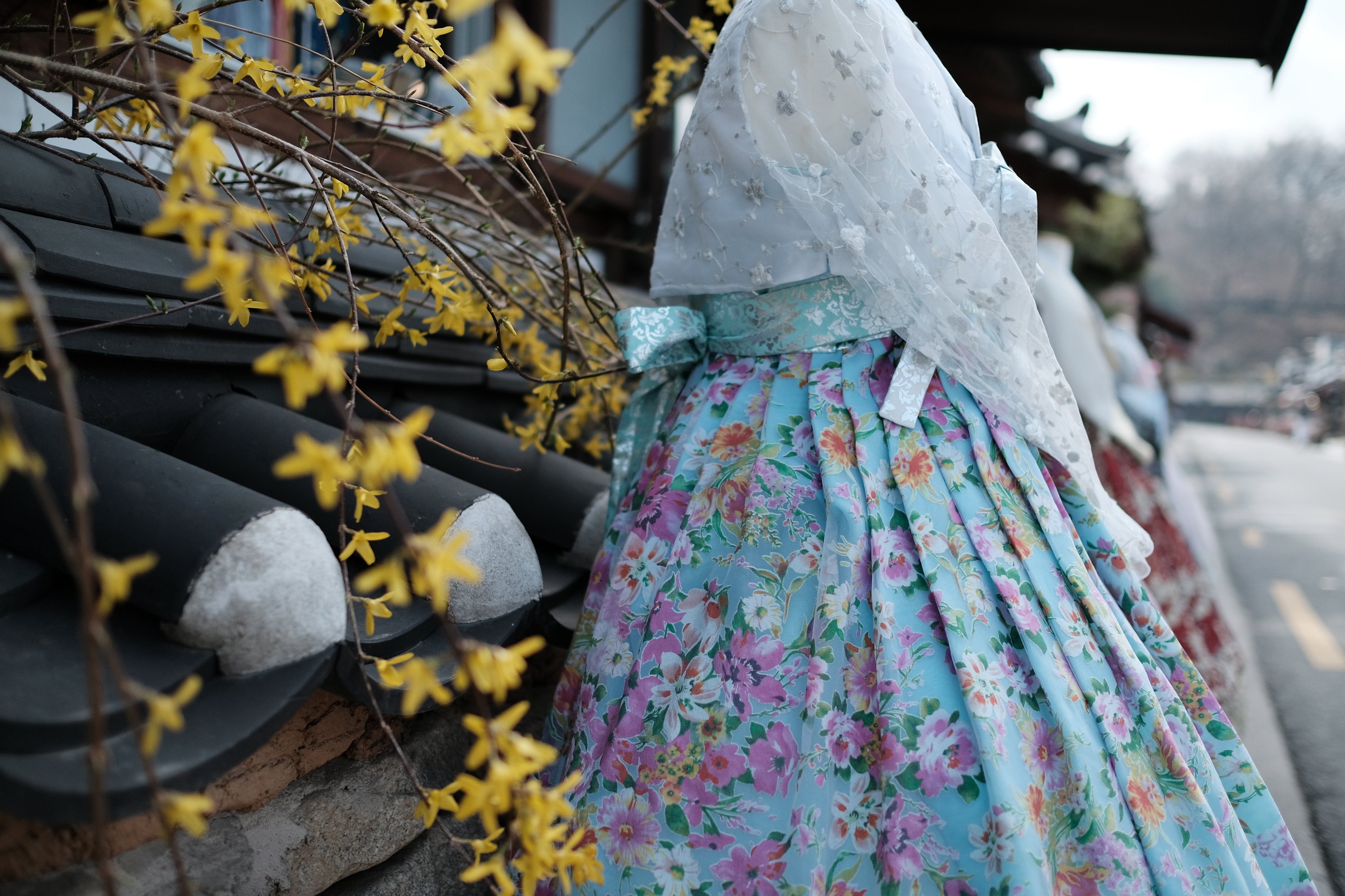 Hanbok display, Jeonju, South Korea Hanbok, traditional Korean dress, on display at the Hanok Village in Jeonju, South Korea.