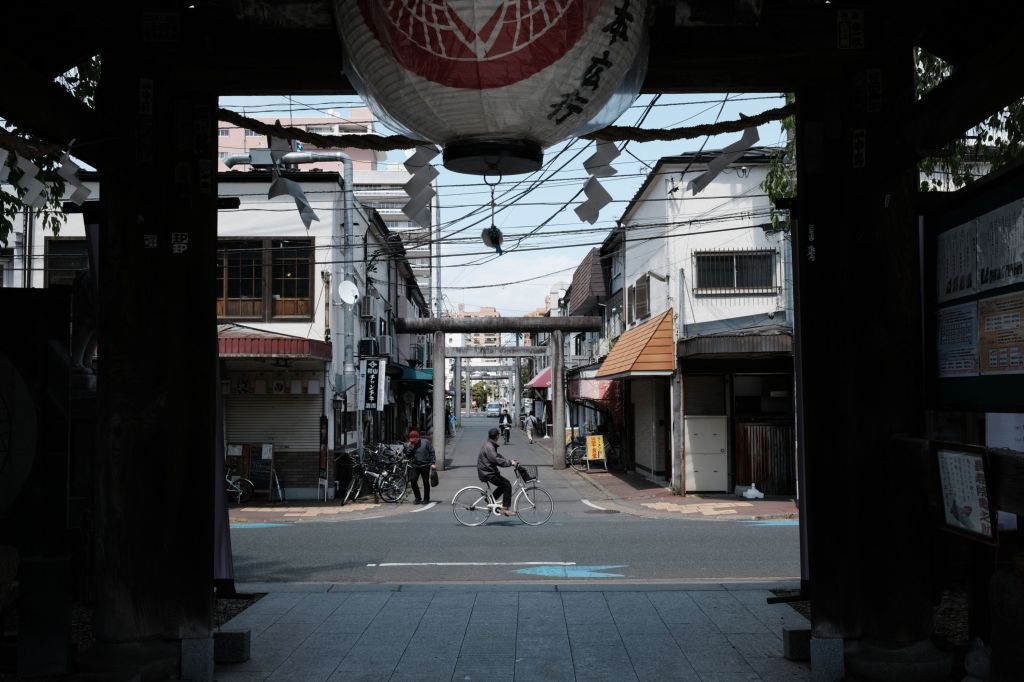 Looking out the gate from Sakurayama-jinja in Morioka, Japan.