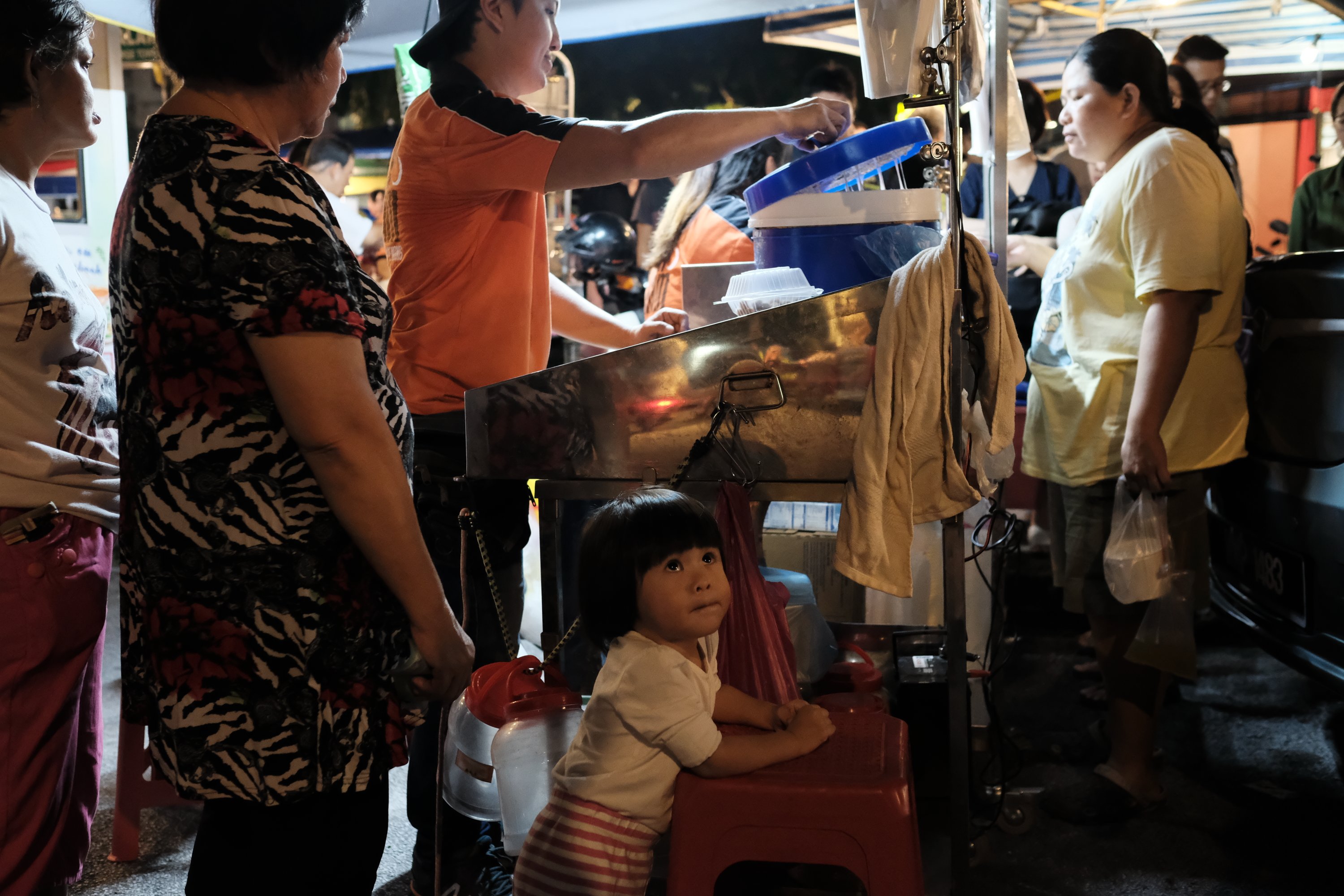 Little girl at the night market, George Town, Malaysia A little girl waits for dessert while it’s being made at the night market in George Town, Malaysia.