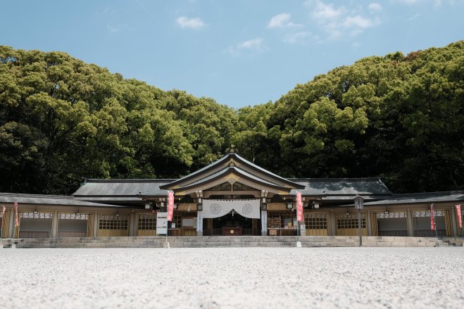 A quiet spring day at Gokoku-jinja in Fukuoka, Japan.
