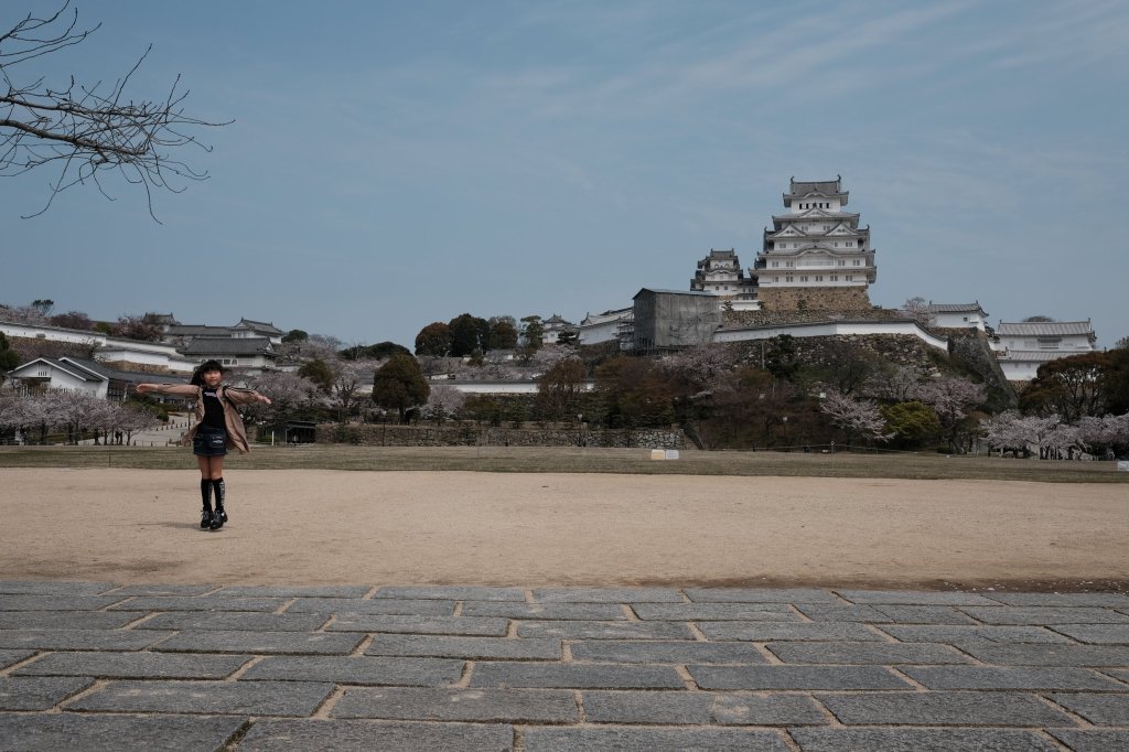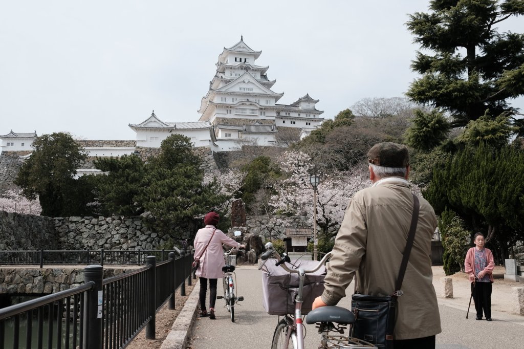 Approaching Himeji-jō, Himeji, Japan People approaching Himeji-jō from the east entrance in Himeji, Japan.