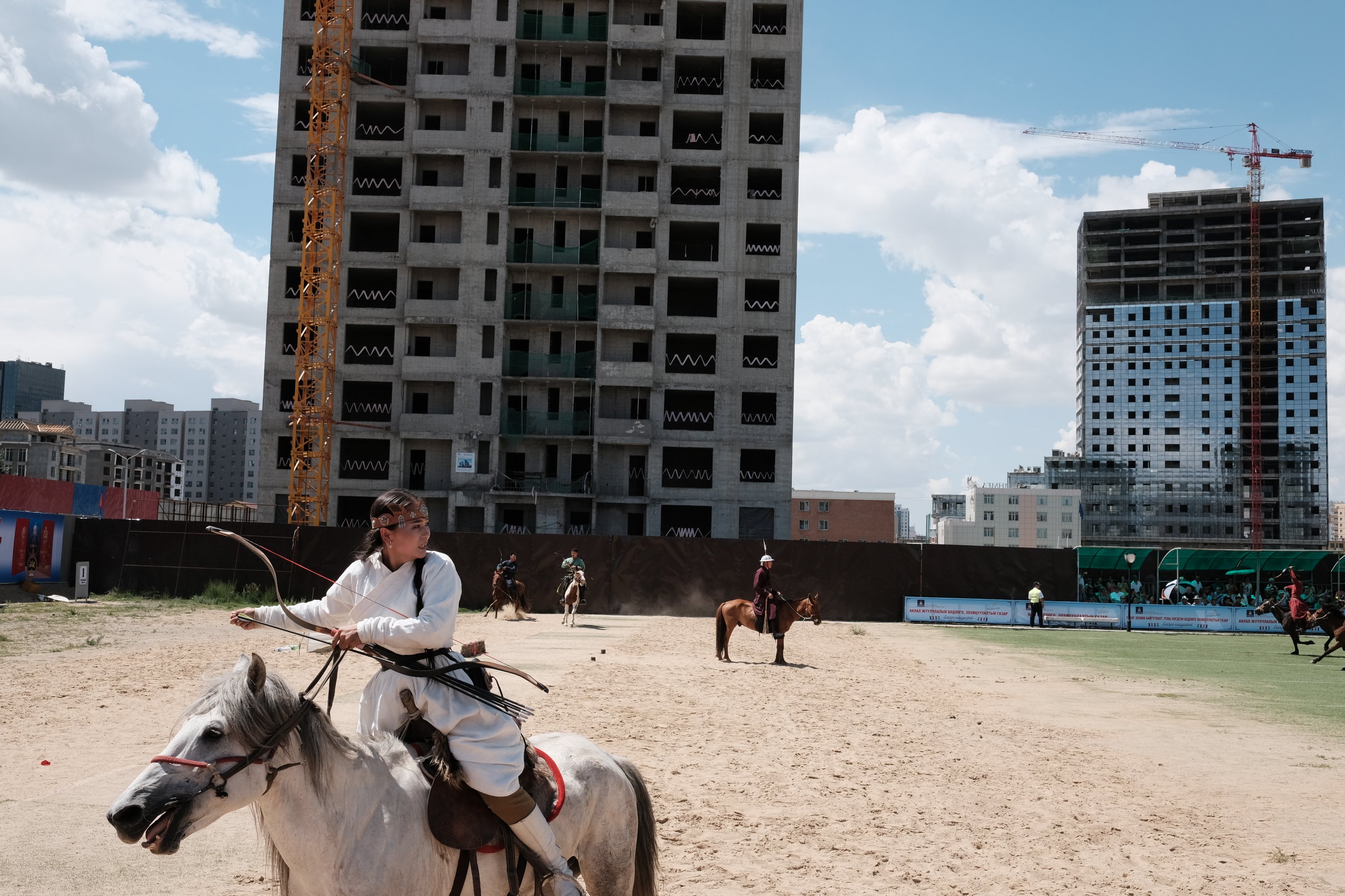 Archer on horseback, Ulaanbaatar, Mongolia An archer riding on horseback during an archery competition at Naadam in Ulaanbaatar, Mongolia.