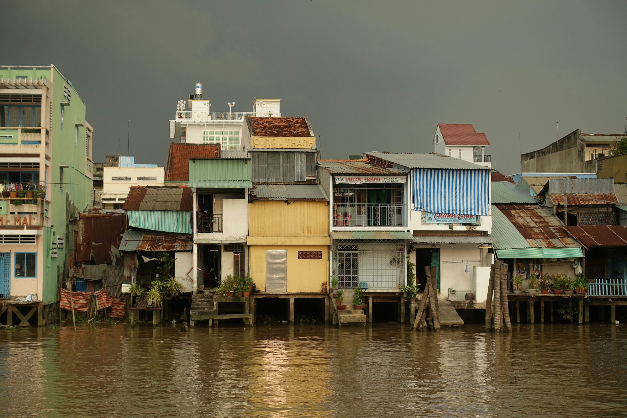Shiny door, My Tho, Vietnam A shiny door on a riverfront house reflects the setting sun in My Tho, Vietnam.